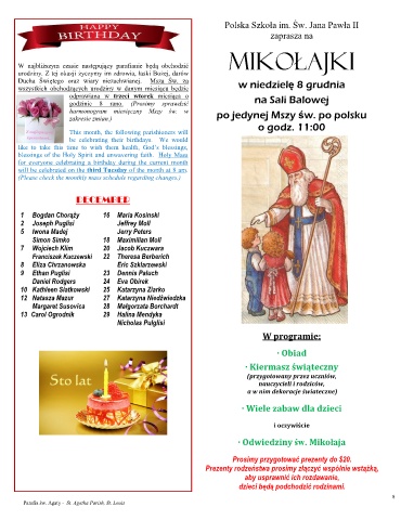 Page 8 - December 2019 newsletter for Polish Roman-Catholic Church in St. Louis, Missouri.