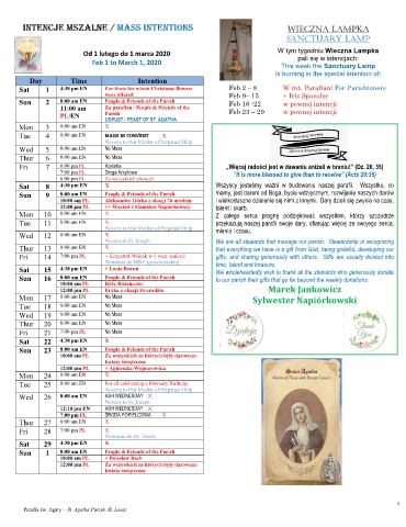Sat 1 4:30 pm EN For those for whom Christmas flowers Feb 2 – 8 W int. Parafian/ For Parishioners