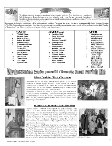 parafii św. Agaty! Serdecznie dziękujemy także ks. Jarosławowi