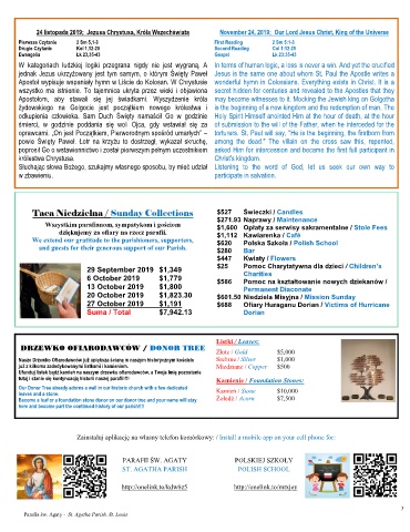 20 October 2019 $1,823.30 $601.50 Niedziela Misyjna / Mission Sunday